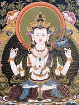 4 Armed Chengrezig | Avalokiteshvara Tibetan Thangka | Wall Decors