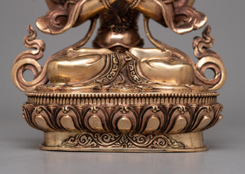 The tranquil expression of Chenrezig is accentuated by the smooth, reflecting surface of the copper, which emits a warm glow that encourages contemplation and quiet. This artwork is a priceless addition to any collection that aims to embodies calm and awareness because it not only decorates a place but also acts as a focal point for meditation and contemplation.