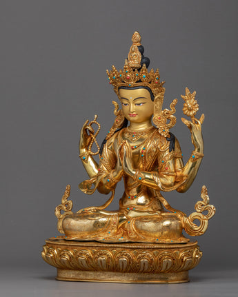 4 Arms Chenrezig Sculpture | Traditional Tibetan Art