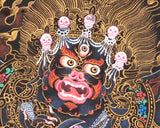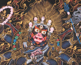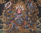 6 Armed Mahakala with Banarasi Silk Brocade | Hand Painted Thangka Art