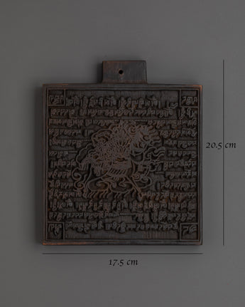 Measuring 20.5 cm in height and 17.5 cm in width, this stamp is perfectly sized for display or ceremonial use. The combination of copper and wood creates a harmonious blend of strength and natural beauty. The eight auspicious symbols, including the lotus, the endless knot, and the wheel of Dharma, carry deep spiritual meanings, ensuring that this stamp isn’t just a decorative piece, but a symbol of protection and well-being in your home or space.