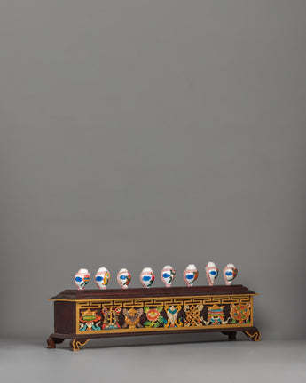 8 Auspicious Symbols Conch Shell Set with Wooden Stand | Ritual Decor