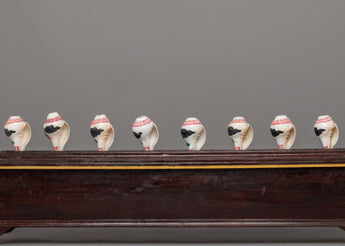 To enhance the beauty of the conch shells, the 2.61 kg wooden base is exquisitely carved with traditional designs. The shells themselves are painted using the conventional technique of Tashitage, which adds vivid hues and elaborate patterns that showcase Nepalese artists' skill. A balanced and exquisite appearance is produced by the skillful blending of natural conch shells and wooden skills.