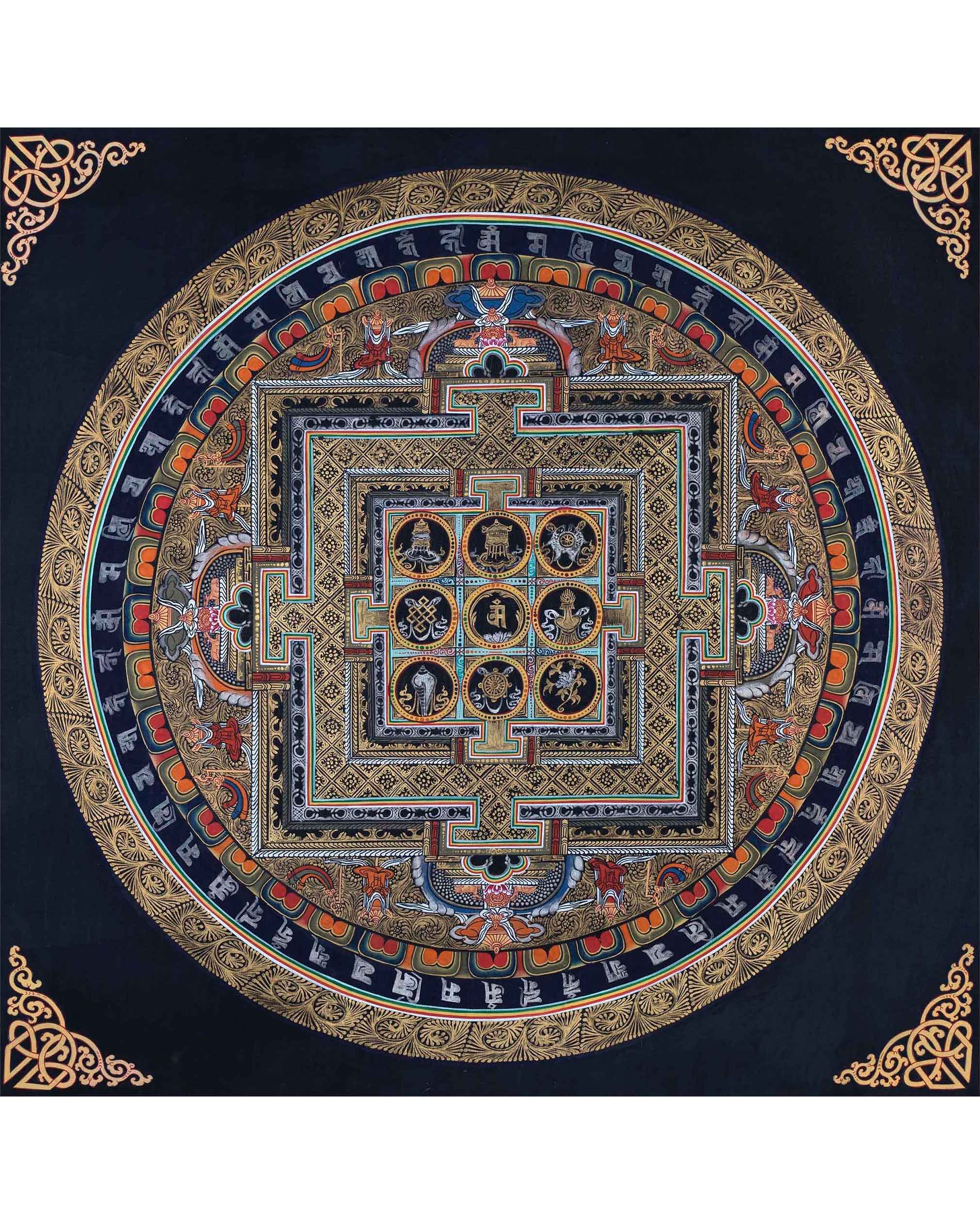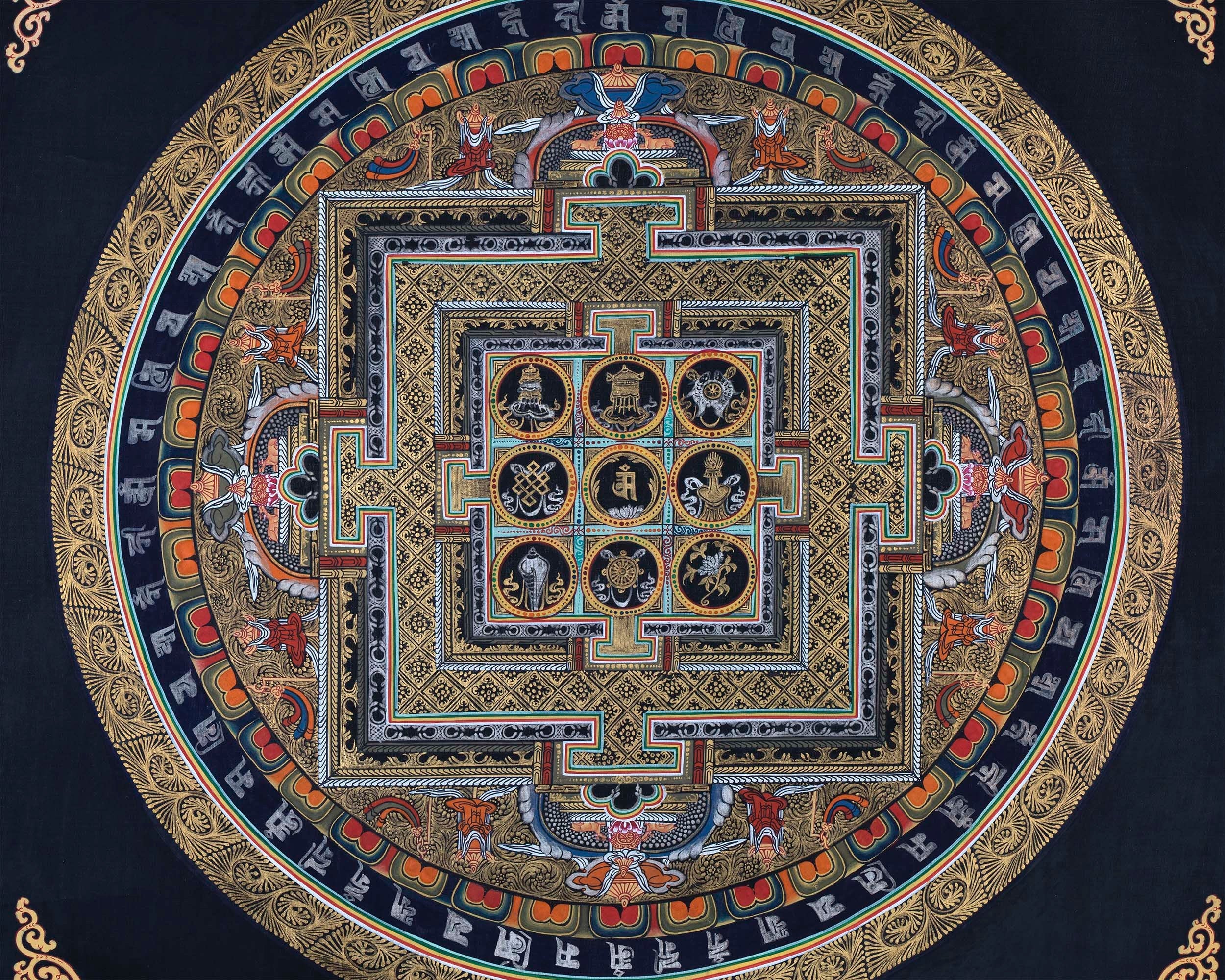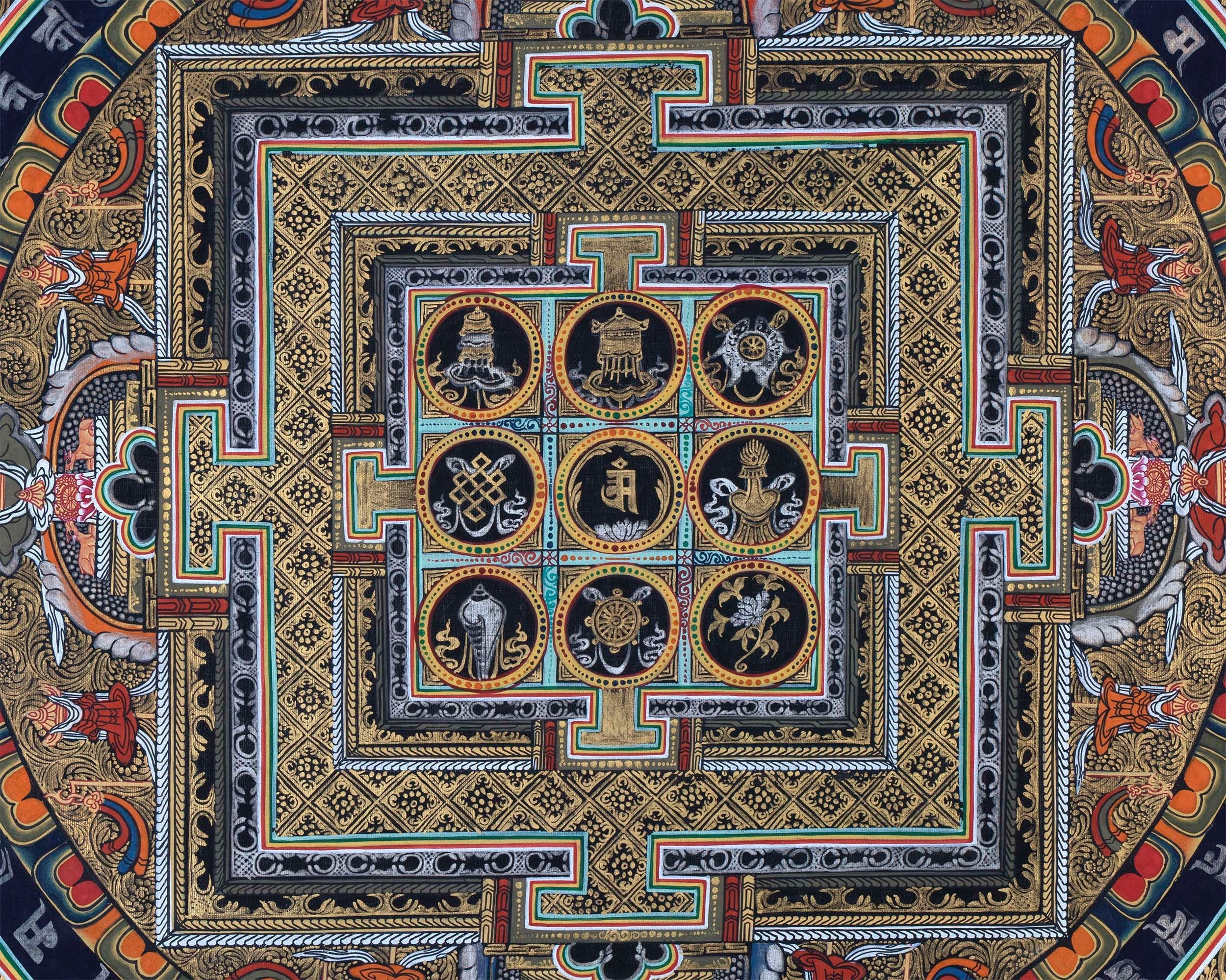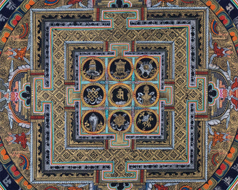 Tibetan Mandala Thangka Painting with 8 Auspicious Symbols