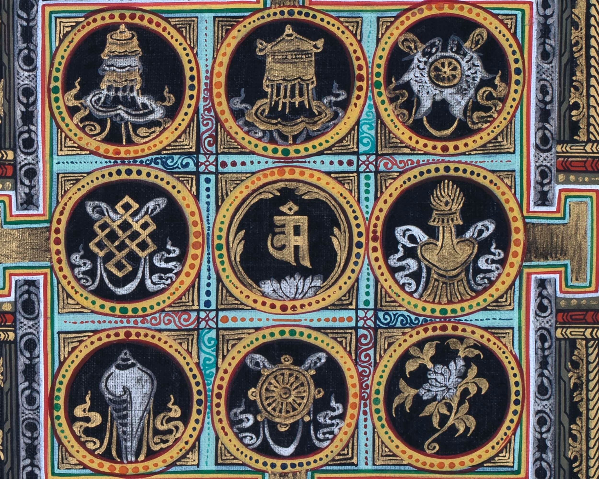 8 Auspicious Symbol Tibetan Thangka | Om Mani Padme Hum Mantra Mandala
