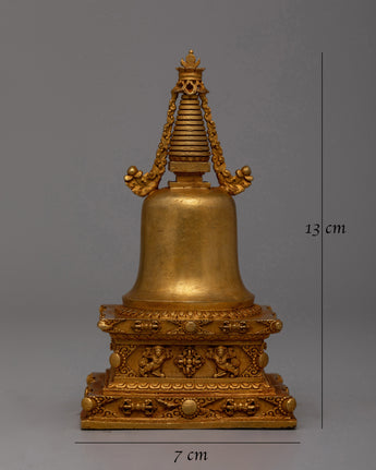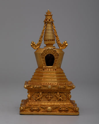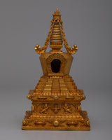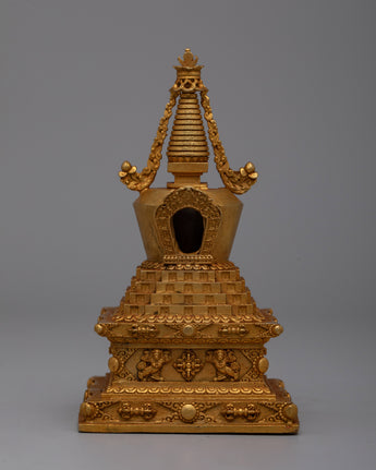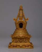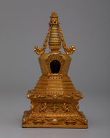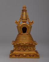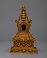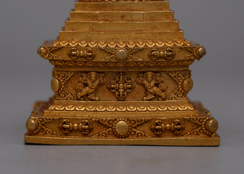 Whether arranged in a meditation area, shrine room, or sacred altar, this eight-piece Buddhist stupa set evokes respect and introspection. Their exquisite designs and shining Gold Plating operate as powerful reminders of the Buddha's ageless knowledge and compassion, pointing practitioners in the direction of enlightenment and freedom from suffering.