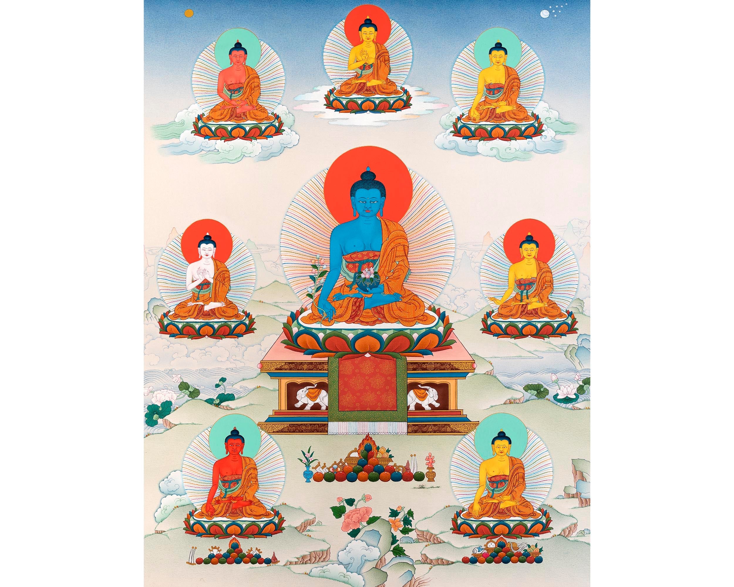 8 Medicine Buddhas | Bhaisajyaguru | Thangka Painting