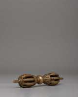 This Vajra, made of Vintage bronze, illustrates eternal artistry and profound symbolism of Buddhist tradition. Whether employed in spiritual activities or as a beautiful centerpiece, it is a strong symbol of clarity, focus, and inner strength. This 8-prong Dorje is ideal for practitioners, collectors, or as a thoughtful present for anyone learning about Buddhist traditions.