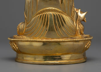 This 9-inch Guru Rinpoche Statue is a beautiful 24k gold gilded artwork that pays homage to the Lotus Born Master, Guru Padmasambhava. With intricate details, it will be a stunning addition to your home décor and your mindfulness practice. Crafted from the finest materials, this statue is sure to make an elegant statement in any space.