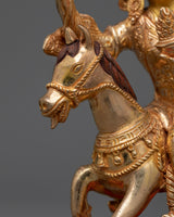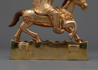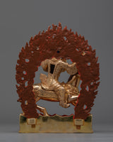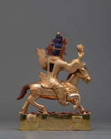 This statue has a copper body that is gilded with 24K gold, giving it a bright and divine presence. It has been enhanced with gold and acrylic paintings and exhibits great craftsmanship in every detail. Weighing 1.82 kg, Achi Chokyi Drolma's tranquil expression and intricate decorations make this statue an effective addition to any meditation space or shrine, Visualize Achi Chokyi Drolma in your home, providing wisdom, safety, and spiritual comfort. This statue is a powerful reminder of Achi Chokyi Drolma's position in Buddhism, symbolizing hope, knowledge, and spiritual enlightenment.