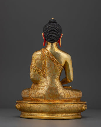 Amitabha's robes are intricately patterned, and his hands and face have expressive features that have all been skillfully sculpted. The work of art has been given elegance and spiritual meaning by the artists' precise attention to detail. In addition to signifying the sacred essence of Amitabha Buddha, the gold gilding highlights the artists' superb skill. For those looking for a work of art that captures the spirit of enlightenment and boundless compassion, this statue is perfect.