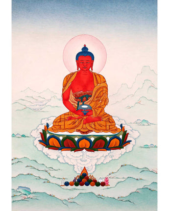 Note: Amitabha Buddha Thangka is an original painting from Enlightenment Studio located at Boudha Stupa.