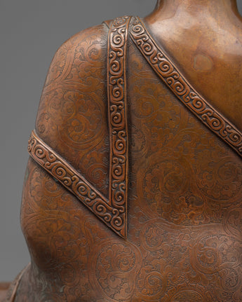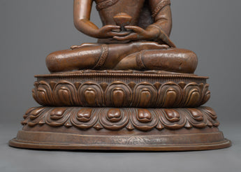 Every element is painstakingly created by Nepalese artists who have dedicated their lives to maintaining the age-old heritage of Buddhist iconography. The oxidized copper body lends the statue a rustic, archaic charm, hinting at Amitabha Buddha's great wisdom and old teachings. Its nostalgic charm blends seamlessly with both modern and traditional decors, transforming your house or shrine into a peaceful haven.