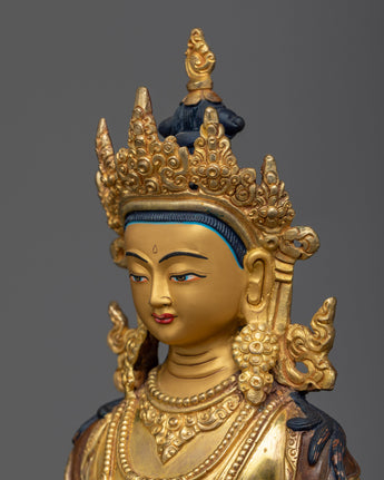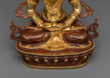 Every feature of this statue represents excellence, from the precisely oxidized copper body that tells tales of excellent craftsmanship to the exquisite application of 24k gold gilding and acrylic paintings that bring out the serene emotions and complex designs that adorn this spiritual piece. A creation that displays the rich cultural heritage and outstanding craftsmanship of Nepalese skilled artisans.