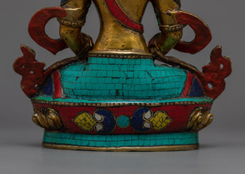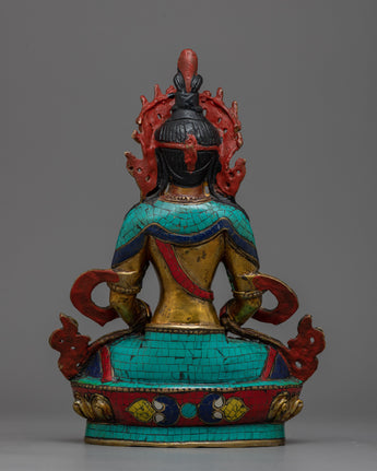 Intricate Craftsmanship and Eternal Blessings of Amitayus Antique Statue Made by Professional Artist of Nepal