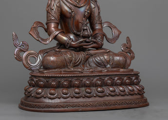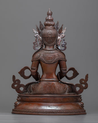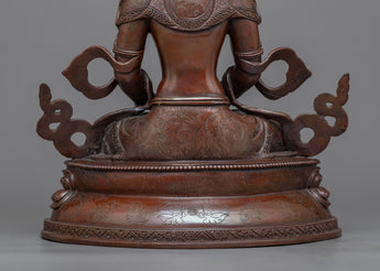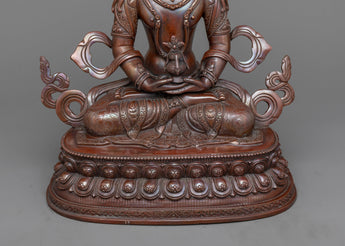 This Amitayus Buddha of Long Life Statue, radiating in calm majesty, motivates you to embrace the essence of eternal vitality. This statue, which was carefully constructed with an oxidized copper body, perfectly captures the ageless wisdom and compassion of Amitayus Buddha.This statue's calm presence acts as a gentle reminder of life's transience and the value of savoring each moment. Let the presence of Amitayus Buddha provide longevity and tranquility to your home, whether it is displayed in your shrine or throughout your interior.