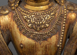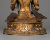 The sculpture is made of copper and adorned with 24K gold gilding, which adds a touch of divine beauty. The antique finish on the copper body adds depth and historical appeal to the statue, bringing out the delicate intricacies and tranquil elegance of Amitayus Buddha. The statue's size and weight make it a noticeable and meaningful presence, great for meditation, spiritual reflection, or as a soothing addition to any household.