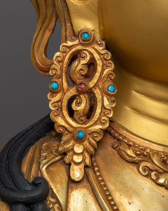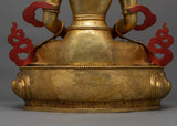 The statue, made with precision from copper and adorned with 24K gold gilding, symbolizes the superb artistry and complex symbolism linked with Amitayus. The gold and acrylic paintings depict his tranquil demeanor and the beautiful intricacies of his robes, representing an endless supply of life and wisdom. Weighing 15.79 kg, its sturdy presence adds stability to any room dedicated to promoting health, meditation, or spiritual growth.