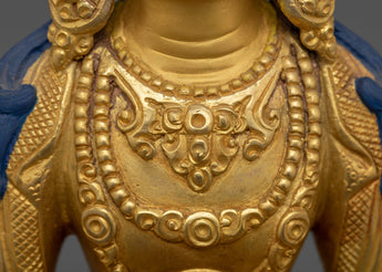 Amitayus is represented sitting in a meditative posture, indicating his vast wisdom and unwavering concentration. His hands are in dhyana mudra, holding a kalasha, a holy vase filled with the nectar of immortality, which represents his function as the giver of long life and energy. His caim demeanor radiates compassion and inner peace, Inspiring practitioners to practice mindfulness and tranquility.