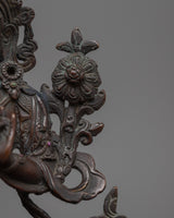 The Amitayus Oxidized Figurine is a classic representation of health and energy that can help you embrace the concept of perpetual health and longevity. This sculpture, which has a base diameter of 6.5 inches and a height of 8.7 inches, exudes tranquility and wellbeing. Due to its oxidized copper construction, it has an air of antique that further heightens its appeal. Allow this beautiful sculpture to serve as the starting point on your path to improved vitality and health.
