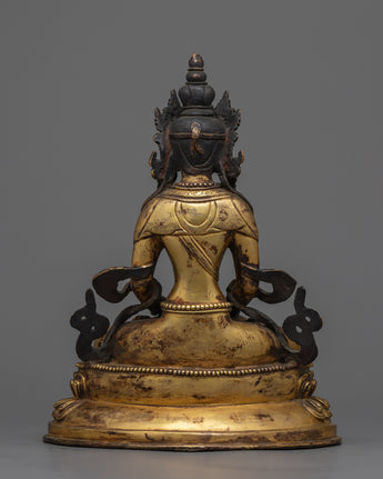 Amitayus, also known as Amitabha, represents endless life and longevity, serving as a light of hope and shelter in the midst of life's ups and downs. This deity, holding a vase of nectar signifying immortality, serves as a constant reminder of the limitless compassion and wisdom that resides within all of us. You are nurturing a deep connection with a centuries-old heritage of spiritual reverence by allowing Amitayus into your house, ushering in an era of personal growth and peace.