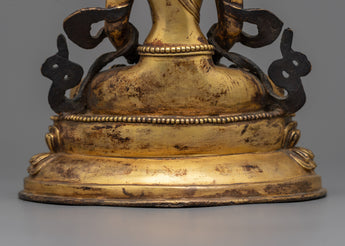 Countless hours have been spent precisely handcrafting each detail to bring out the majesty inherent in the 24k gold-gilded copper body. This magnificent statue, distinguished by its gold undertones, not only serves as a bright focal point in your house but also as a conduit for spiritual enlightenment, assisting in the cultivation of a harmonious atmosphere in your holy place.