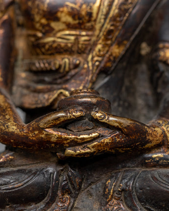 Behold the timeless elegance of the Antique Amitabha Buddha Statue, a masterful creation handcrafted on a copper body. This statue exudes an aura of serenity and grace, capturing the essence of the ancient artistry that has withstood the test of time. Crafted with meticulous attention to detail, the antique finish adds a touch of mystique and authenticity, making it a true treasure for collectors and devotees alike. As you gaze upon this exquisite piece, you'll be transported to a realm of tranquility, where the wisdom and compassion of the Amitabha Buddha resonate deeply within. Embodying the essence of enlightenment, this statue serves as a powerful reminder of the eternal journey toward spiritual awakening.