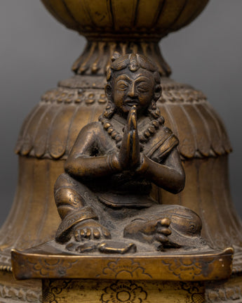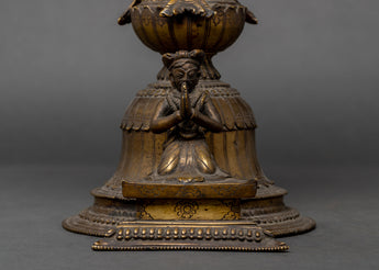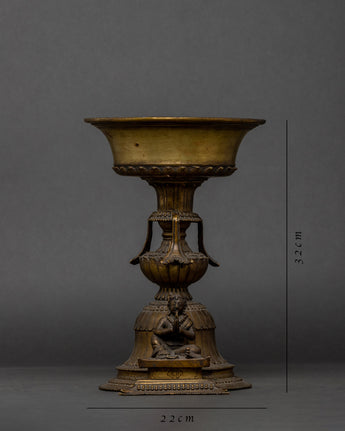 Antique Brass Stand Oil Lamp Set | Tibetan Butter Lamp Couple
