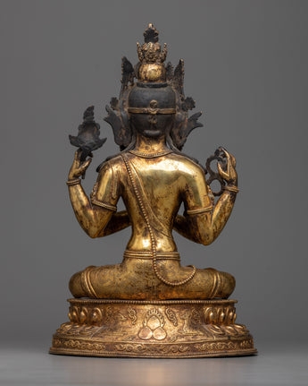 Antique Finished Chenrezi Statue | Embodiment of Infinite Compassion