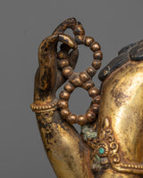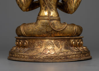 The 24K gold gilding on this statue enhances its aesthetic appeal and reflects Chenrezig, also known as Avalokiteshvara,'s purity and unbounded compassion. Its large size makes it an eye-catching addition to any meditation room, home altar, or spiritual art collection. With its blend of divine beauty and spiritual significance, this Chenrezig statue serves as a profound reminder of the potential for compassion and kindness within us all.