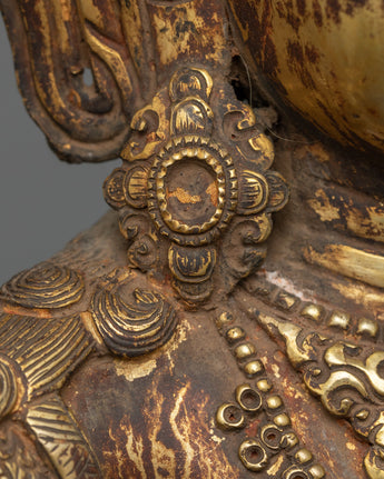Antique-Finished Peaceful Manjushri Statue | 24K Gold Gilded Wisdom