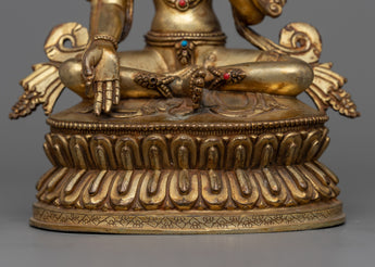 With our magnificent Green Tara, we welcome a conduit of ancient peace and compassion, delicately antique-finished to resonate with the time-honored energies of spiritual understanding and enlightened empathy. This antique-style beauty serves as a divine reminder of Tara's unwavering protection, limitless love, and compassionate presence, giving any area a serene, harmonic balance.