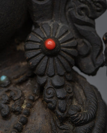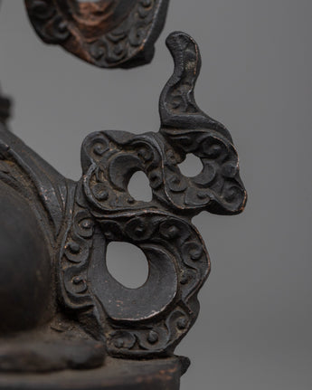 This Green Tara statue, weighing 1.38 kg, is a powerful yet small addition to your home or spiritual place, welcoming serenity and tranquillity into its surroundings. The antique finish gives the statue a feeling of historic appeal, transforming it into more than just a decorative element.