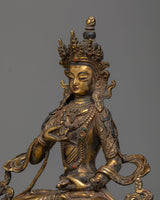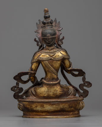 Embrace Spiritual Clarity with Arca Buddha Vajrasattva - Antique Gold Gilded Copper Statue