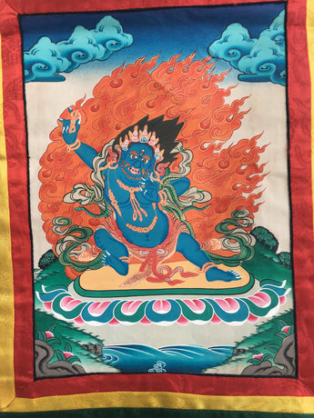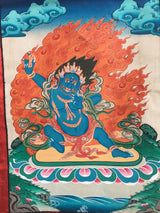 Arya Bodhisattva Vajrapani Thangka Painting with Brocade Mounted | Tantric Wrathful Bodhisattva Painting | Wall Hanging Yoga Meditation Art