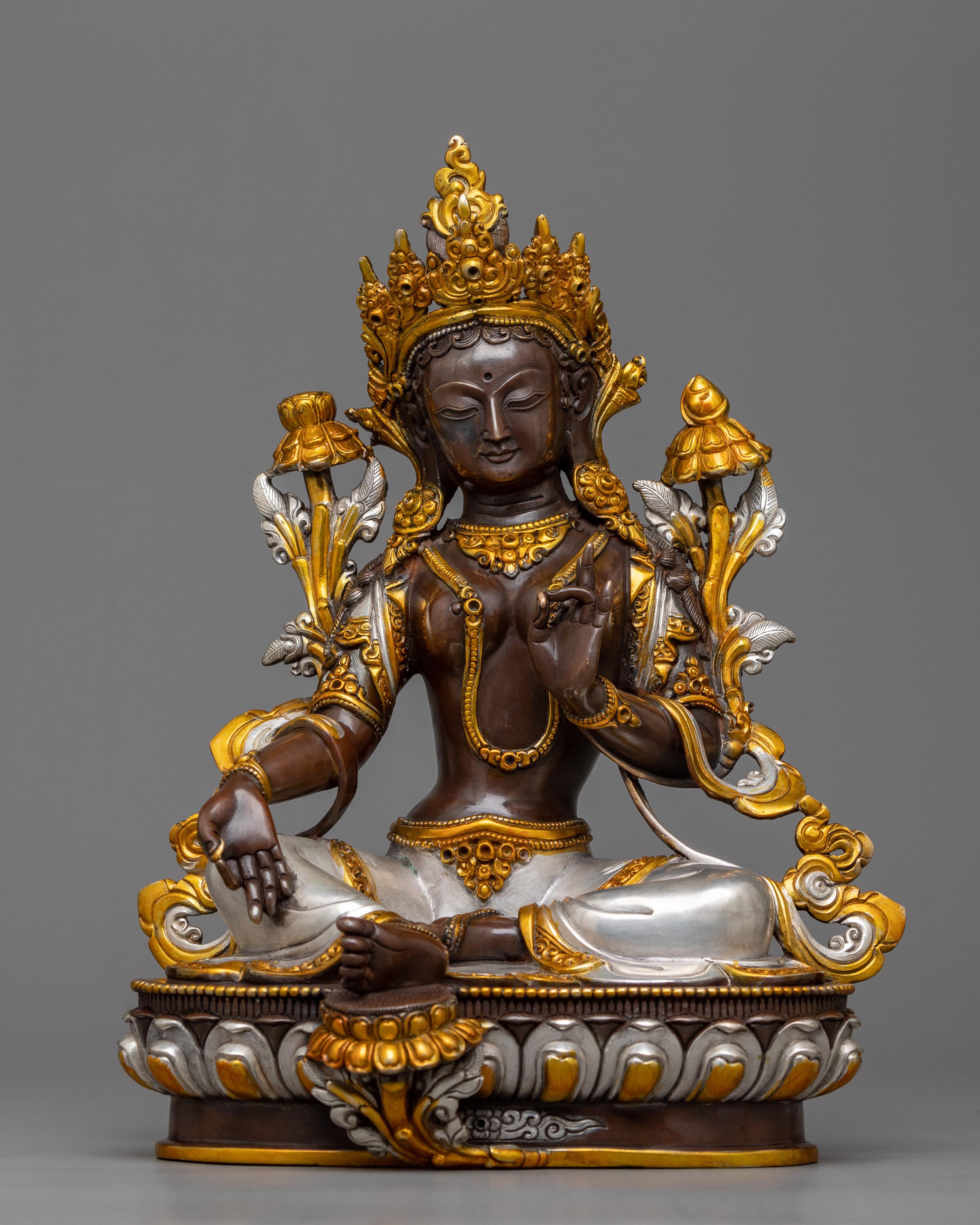 Green Tara Sculpture: A Symbol of Active Enlightenment in Oxidized Copper