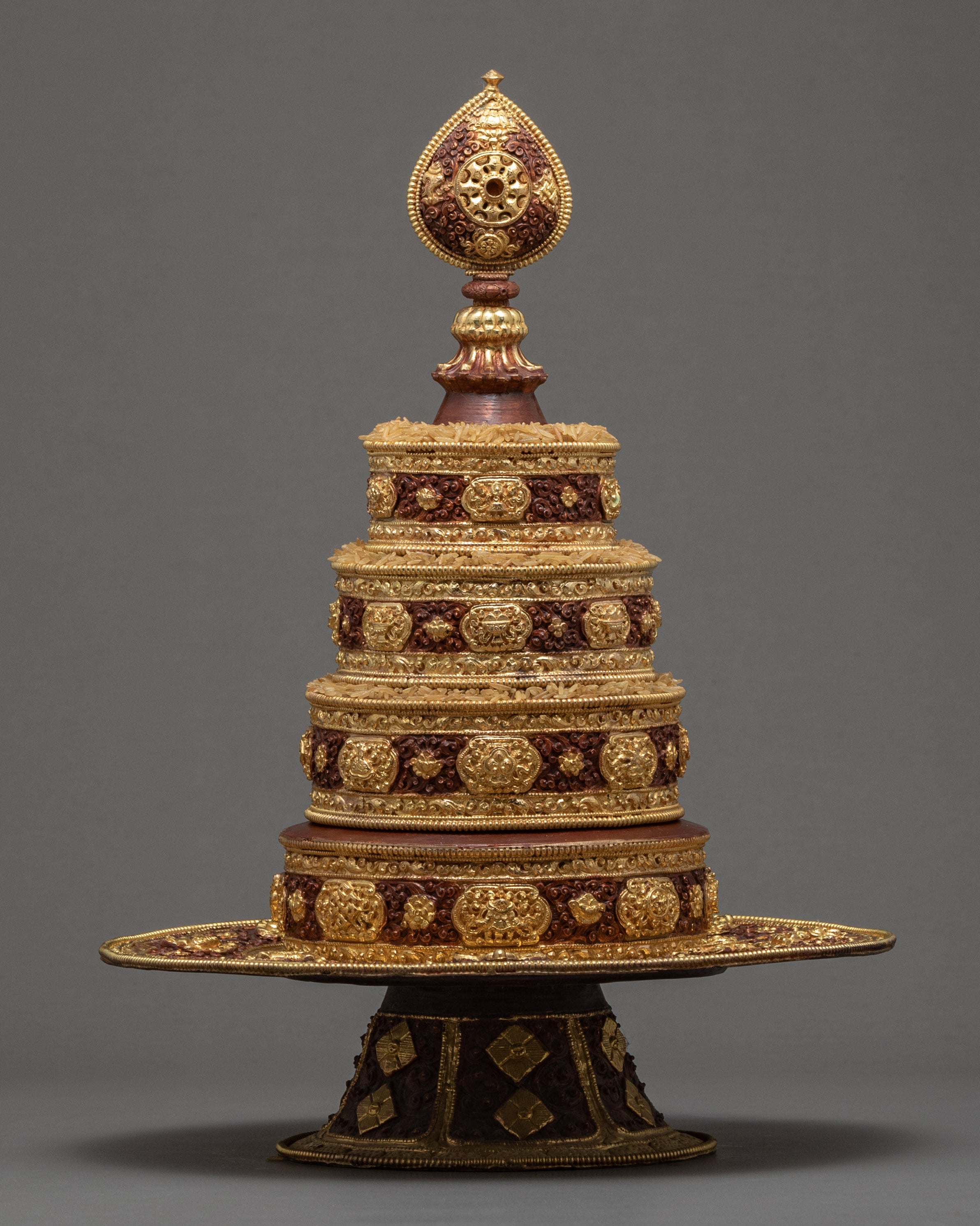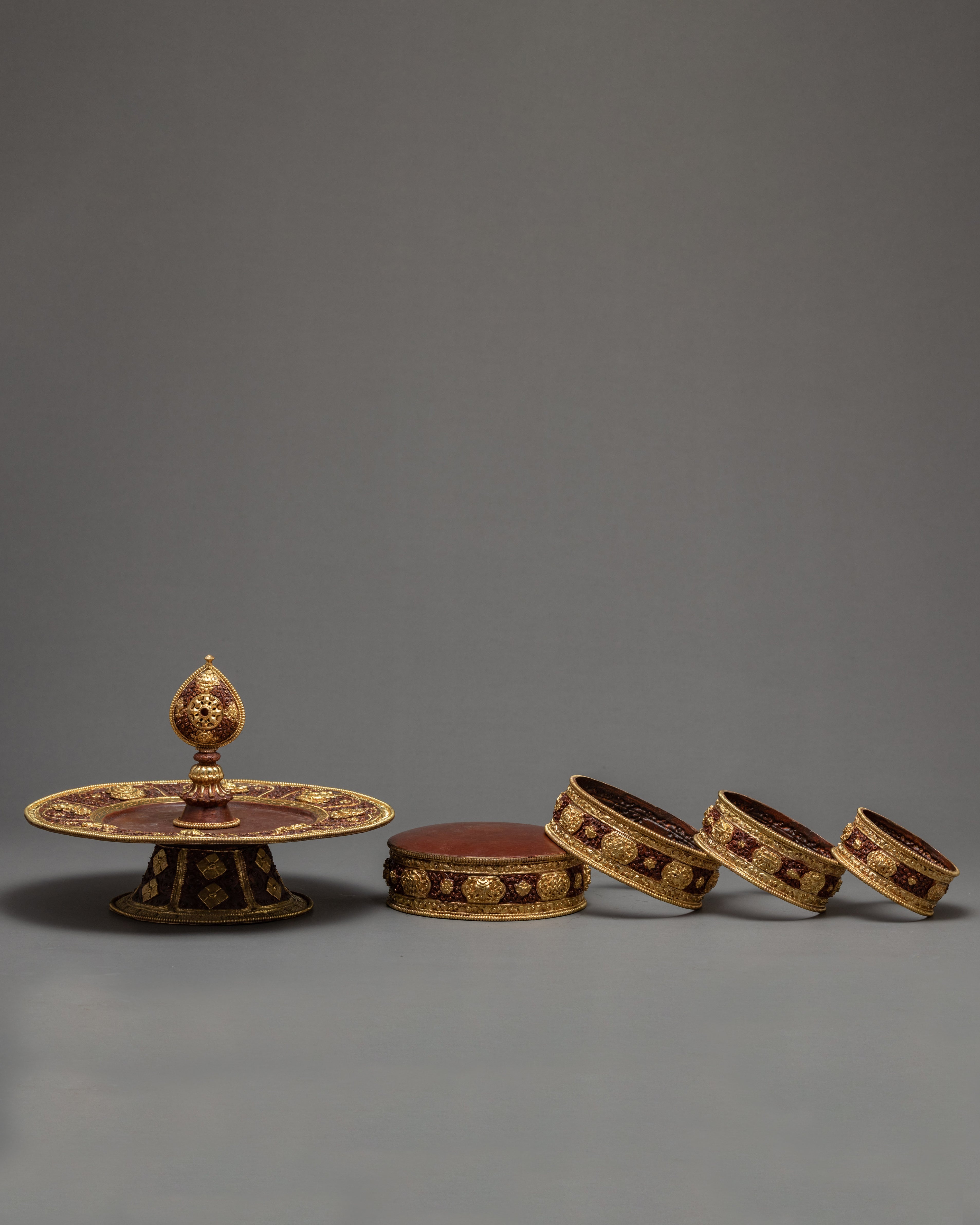 Mandala offering sets are a staple in the lives of Buddhist followers. Mandala offerings provide a significant planning to everyday reflection. Practitioners require mandala sets to help them balance the outer world with their inner mind. Especially used in conjunction with other meditative tools, the mandala set can grant the illusive virtues of wisdom and merit to devotees.