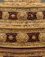 Another beautiful traditional mandala set from our collection, made of mercury and partly gold, is delightfully hand-carved with lovely Ashthamangala carvings.