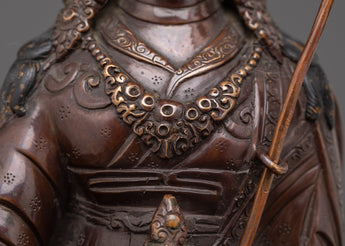 Embrace Padmasambhava, also known as Guru Rinpoche, and his profound knowledge and spiritual protection with this Sacred Guru Rinpoche Sculpture. The oxidized finish gives the statue an aged appearance, representing Guru Rinpoche's timeless knowledge and teachings, inspiring practitioners worldwide.