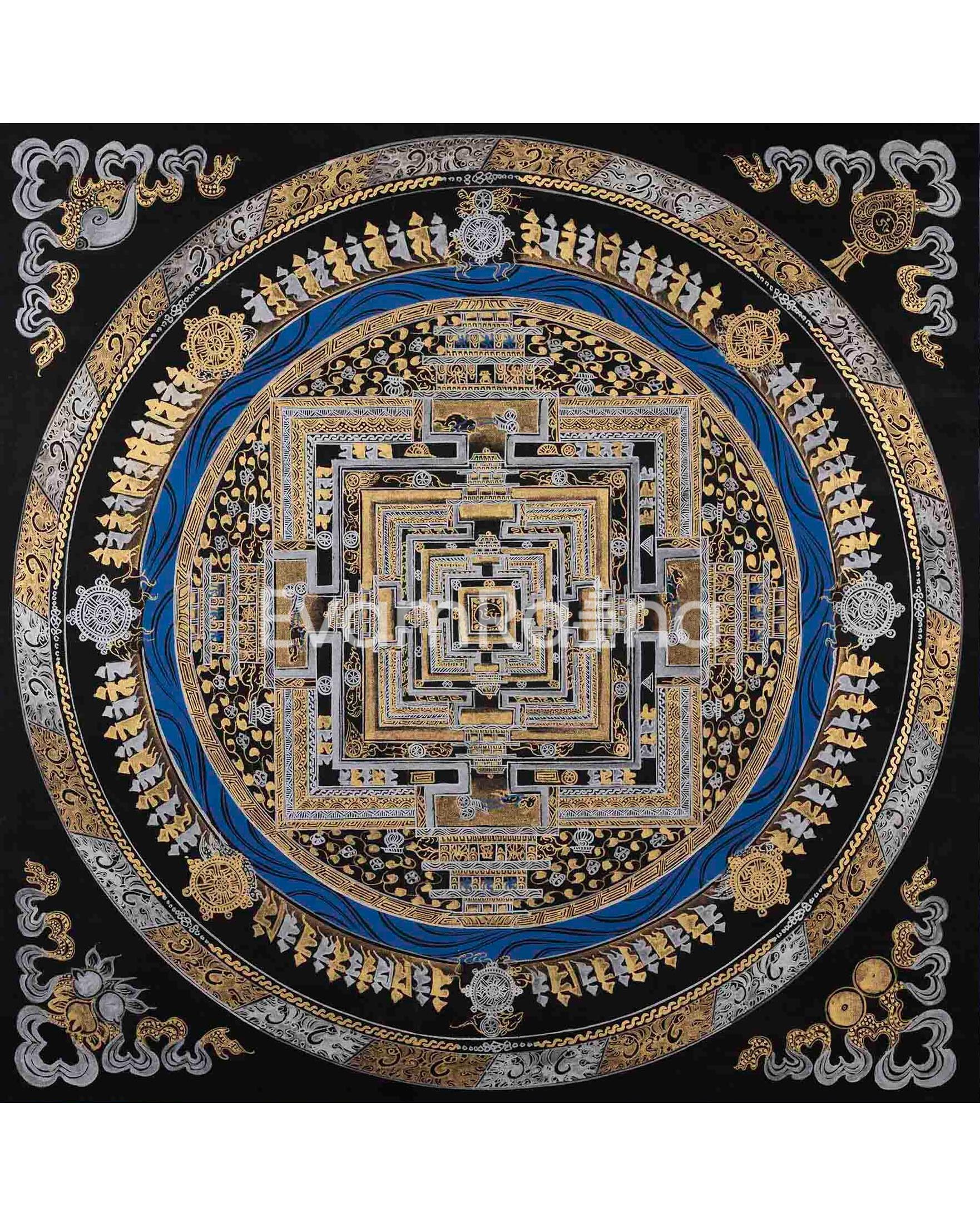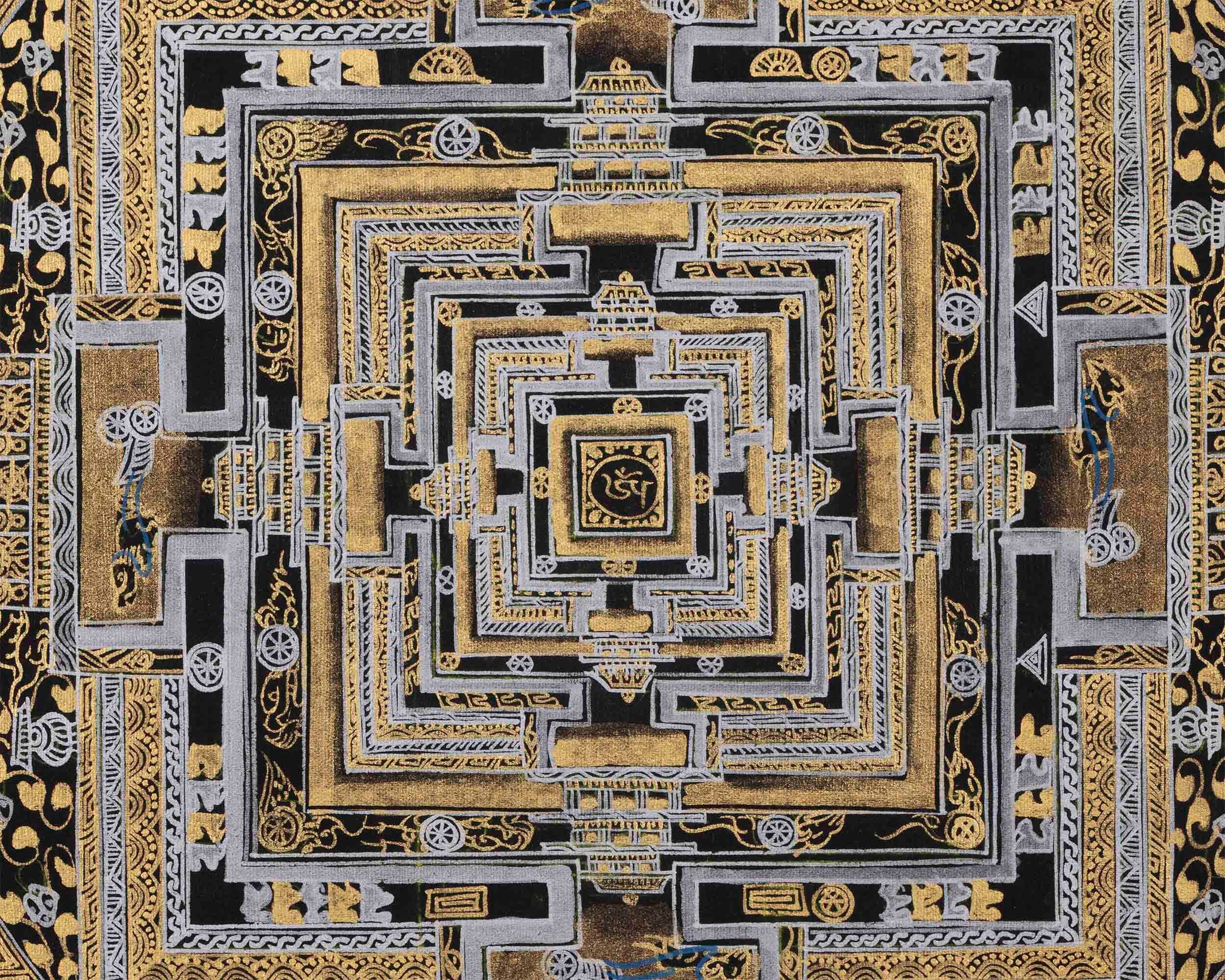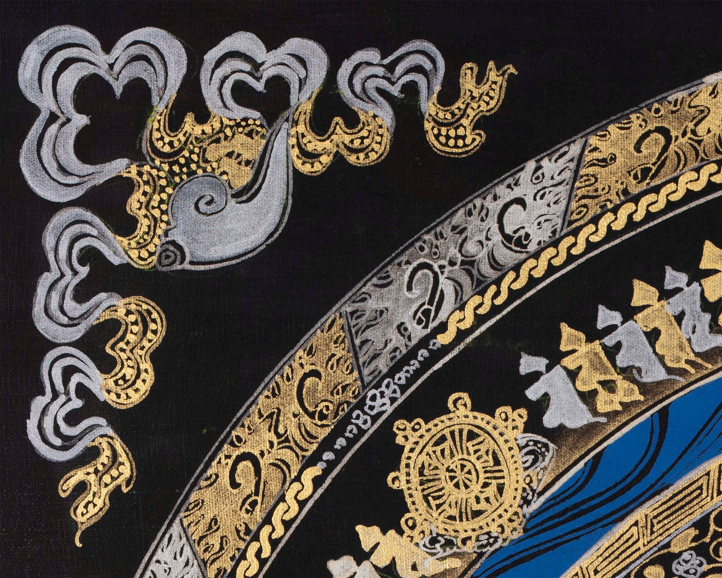 Attractive Gold and Silver Imitation Colored Kalachakra Mandala | Unique Wheel Of Time Wall Decoration Mandala