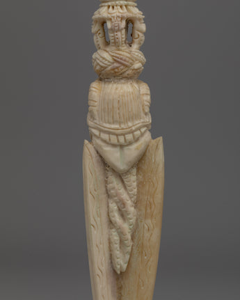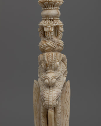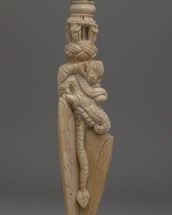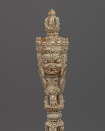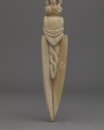 In Tibetan Buddhism, the Phurba is highly respected for its capacity to overcome obstacles and negative energies. Its intricate carvings pay homage to the ancient gods and symbols connected to Tibetan spirituality. This Phurba dagger symbolizes Tibet's rich spiritual legacy, whether it is utilized in ceremonial rituals, as a protection talisman, or as a unique ornamental item.