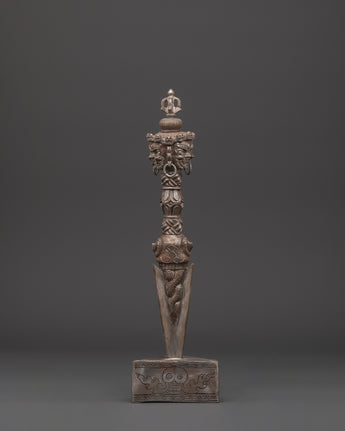 The Phurba is a profound symbol of spiritual transformation and empowerment, deeply rooted in Tibetan Buddhist traditions. Whether incorporated into meditation practices or displayed as a powerful piece of sacred art, this handcrafted iron ritual dagger brings profound spiritual significance to your practice. Beyond its functional role in rituals, it serves as a striking representation of Tibetan heritage, embodying protection, purification, and enlightenment. Owning this authentic Phurba connects you to centuries of spiritual wisdom, helping to clear negative energies and foster inner growth, making it an essential and inspiring addition to any sacred space.