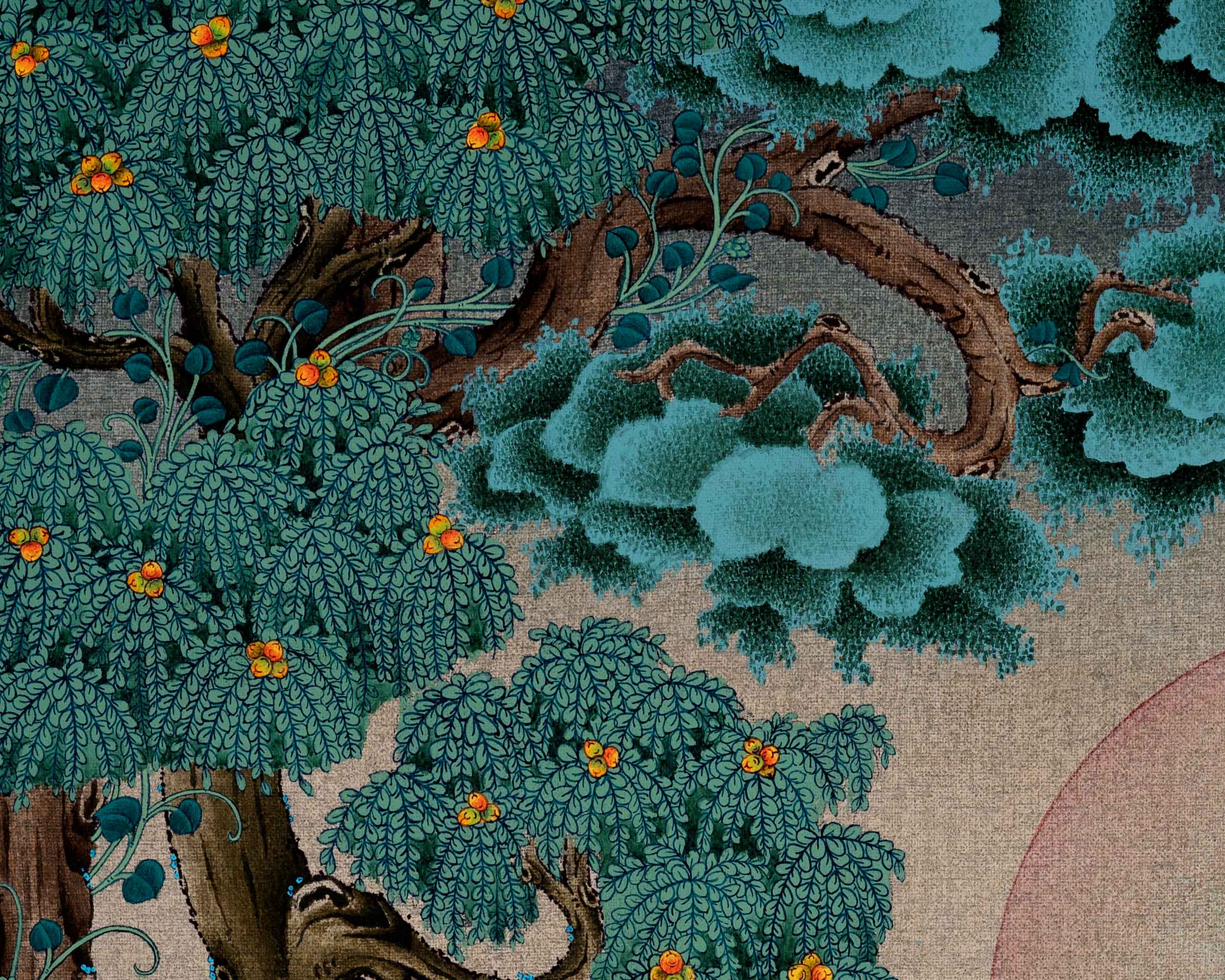 HAND-PAINTED WITH NATURAL STONE COLOR AND GENUINE 24K GOLD IN TRADITIONAL KARMA GADRI STYLE