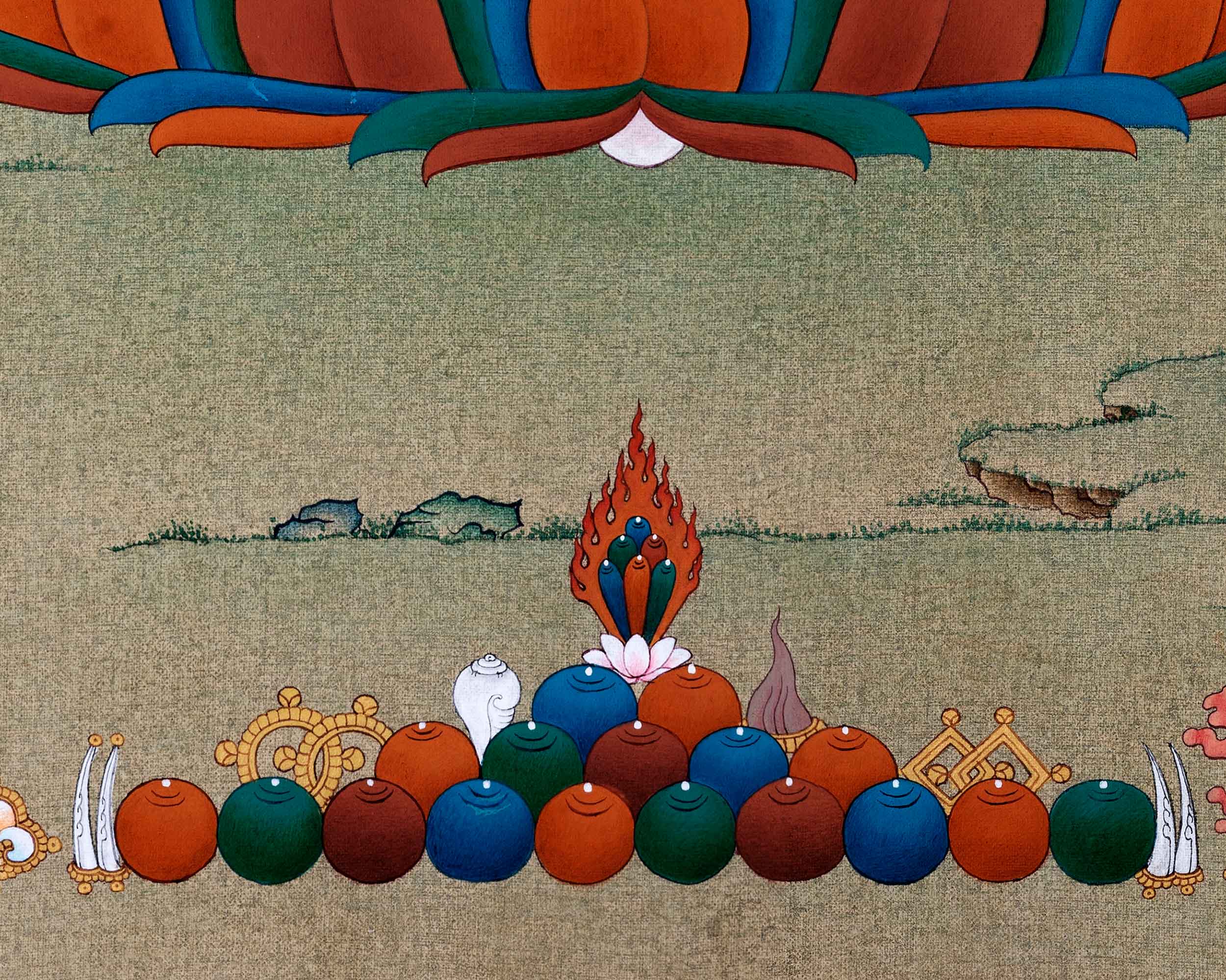 As requested for consecrations/blessings, we can take thangka to Monasteries/Rinpoches from nearby Boudha Stupa. We kindly ask you to offer $50 for the monasteries for blessings/consecration services.