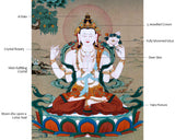 Note: Four-Armed Chenrezig Thangka is an original painting from Enlightenment Studio located at Boudha Stupa.