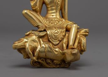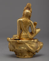 The beautifully handmade statue of Avalokiteshvara Guanyin is made of a copper body and gilded with genuine 24k gold in traditional Himalayan method of Nepal. We have depicted the compassionate bodhisattva deity seated, looking or glancing down, symbolizing that Guanyin continues to watch over the world. Guanyin represents Avalokiteshvara and is highly known as the "Goddess of Mercy" or "Mercy Goddess" in china.
