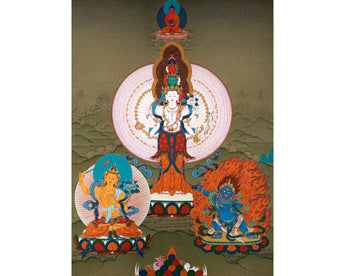Avalokiteshvara, Manjushri & Vajrapani Thangka, 1000 Armed Chenrezig, Tibetan Buddhist Art