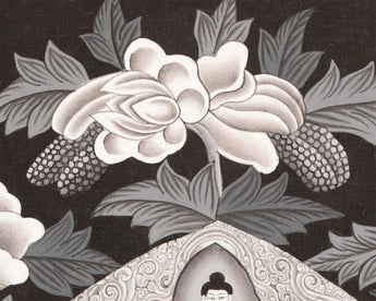 A thangka is a classical and stylized form of Nepalese and Tibetan painting. The art is explicitly religious, all symbols and allusions must be in accordance with strict guidelines laid out in Buddhist scripture. It is painted with the use of gold and other various natural colors.