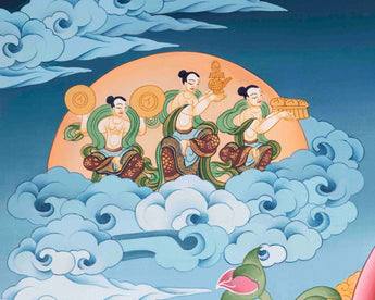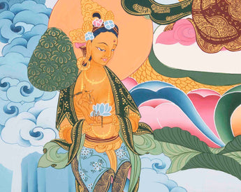 It goes without saying that every detail of a painting has a symbolic meaning. Regardless of your religious affiliation, a thangka can help you on your path to enlightenment, whether you practice Buddhism or have other religious convictions. Thangkas are paintings that depict deities with various iconographic elements and symbolism that encourage meditation on the teachings of the god they depict. Any thangka is intended to aid in the removal of the film of ignorance, which is a significant barrier to the road to enlightenment. The Thangka is revered as a holy item. They promote positivity, spread Buddhism's teachings, bring about peace, harmony, and oneness, and dispel any negative energy that may be there.