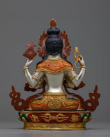 Crafted with exquisite attention to detail, this handmade Avalokitesvara Statue is a beautiful representation of the Tibetan four-armed Chenrezig. Handcrafted with intricate details, this colorful piece exudes sophistication and exclusivity, making it an ideal addition to any discerning space.